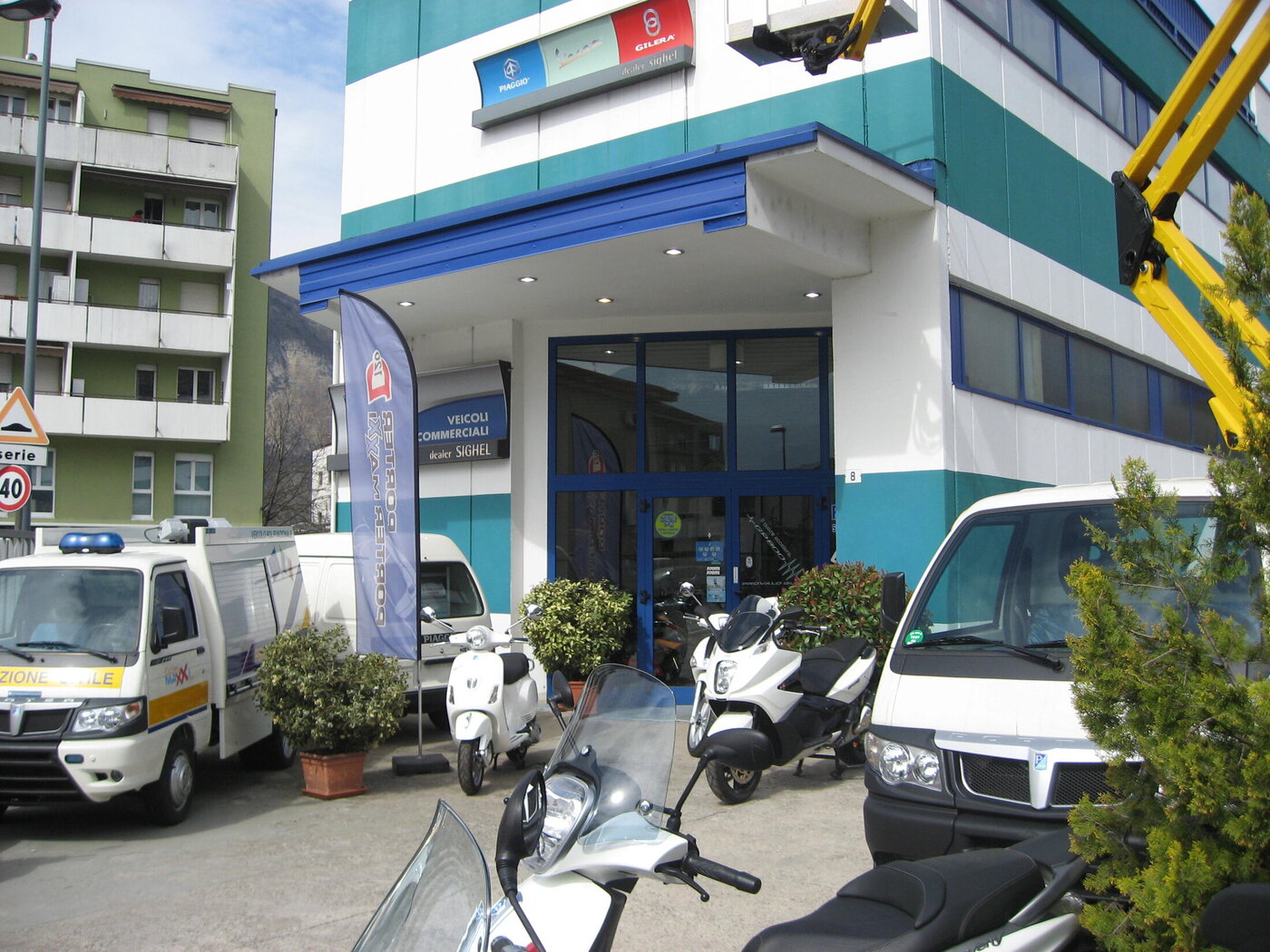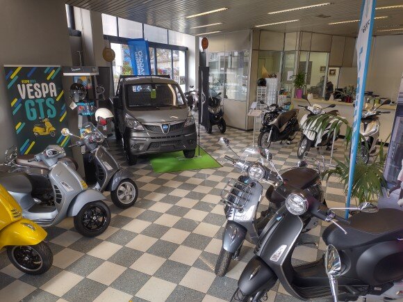 Il piano terra della Sede di via Lavisotto è dedicato al salone esposizione delle due ruote e all’ufficio vendite, mentre all’esterno sono in visione i veicoli da trasporto leggero. Sul retro è sistemata l’officina riparazioni e tagliandi.