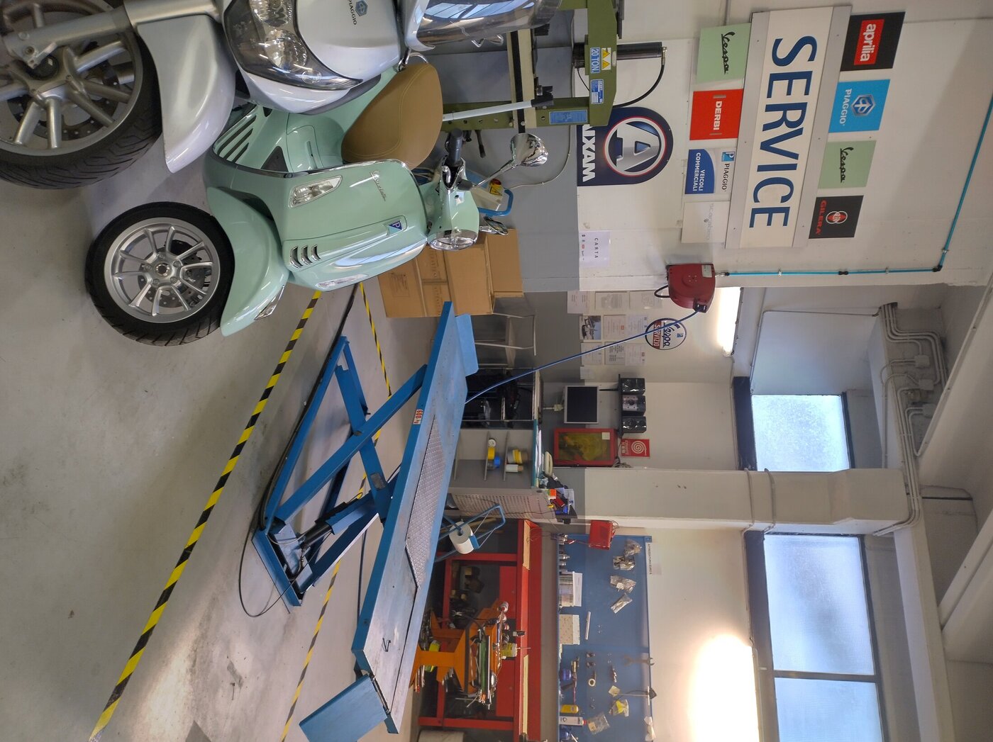 La nostra officina è concepita per soddisfare le esigenze dei clienti di tutta la gamma Piaggio, dai più moderni Porter euro 6 D-Final Gpl o metano alla nuova gamma di scooter dove l'elettronica è protagonista fondamentale, per poter eseguire test e regolazioni direttamente "on line" con gli stabilimenti di Pontedera .