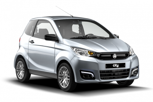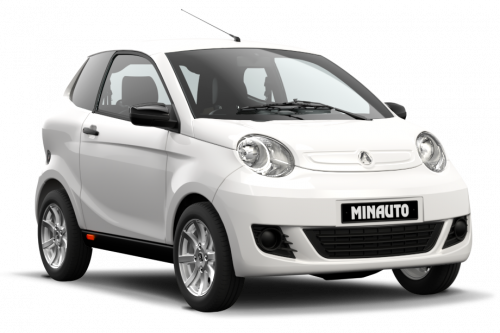 Tutti i comfort di un'automobile nella minicar bianca dalla vivibilità eccezionale.